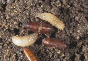 The larvae that were born, usually up to 1 mm long, the body is transparent. As it grows, it turns white. Before pupation, the larva becomes off-white, the body length can reach 7 mm, and the mandible is located at the front end of the body. Insects are very voracious, feed on germinating seeds, some insects. If food is not enough to eat last year's vegetation. This stage of development of the germ fly can take from 10 to 40 days. Faster growing up takes place in warm weather. The larvae pupate in moist soil, at a depth of 7-10 cm, the cocoon has a rigid structure, is colored in a brown-yellow color. They hibernate in the ground, at a depth of 10-12 cm, and with the advent of heat they creep out to the surface.