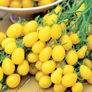 Formation of tomatoes occurs in huge clusters of 30-40 pieces. Tomatoes are not large, on average, 25-30 g. The shape of a tomato is pear-shaped, similar to light bulbs. The color is yellow, hence the name of the variety - the tomato "Sweet Golden Bunch".