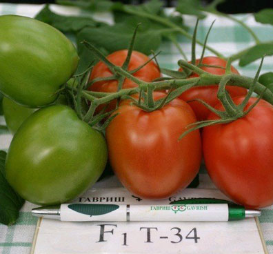 Originators advise to achieve maximum results, for the production of tomatoes all year round to try to study and apply technologies of extended circulation, because all the characteristics of T34 variety are suitable for this purpose just perfect. This newest combat variety is remarkably adapted to growing with the help of intensive technologies (because the seeds pay for themselves very soon, despite their high cost so far).