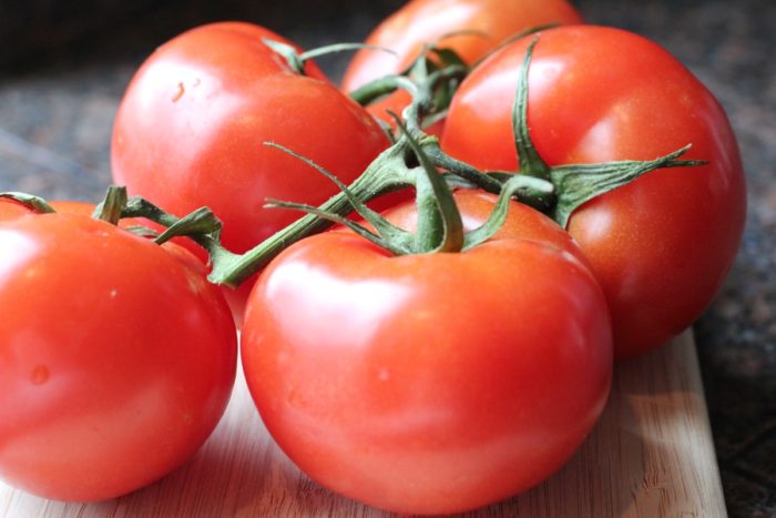 - Skin color - scarlet, it is thin, but dense. There is a slight ribbing on tomatoes.