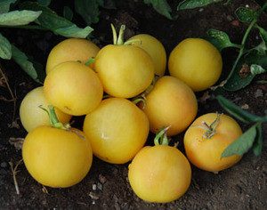 The picture with the red peach is interesting, because two companies offer this tomato to vegetable growers: