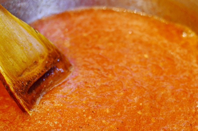 With the spices boil the sauce for another 10 minutes, at the end add a little more vinegar and stir the sauce until it boils. Ketchup need to boil for 5 minutes, then turn it off.