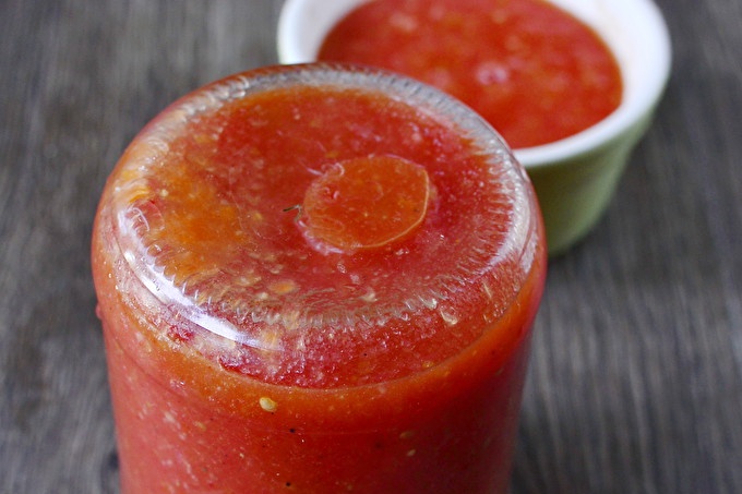 Homemade ketchup of tomatoes and apples is ready and will serve as a great addition to any dish.