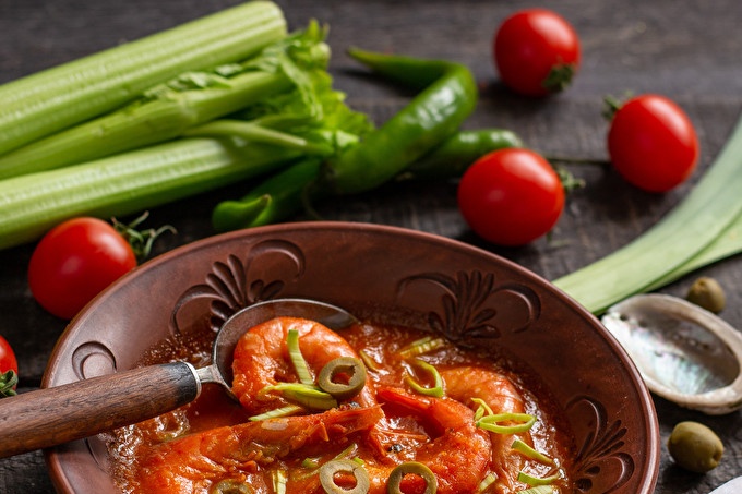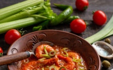 Tomato soup with shrimps, a recipe with a photo, which you can quickly cook a delicious thick soup of canned tomatoes, celery, onions and carrots. This recipe is suitable for diet and lenten menus and vegetarians, if you replace the chicken broth fish.