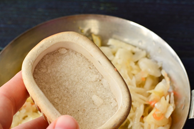 Add the prepared sauerkraut to the fried onions.
