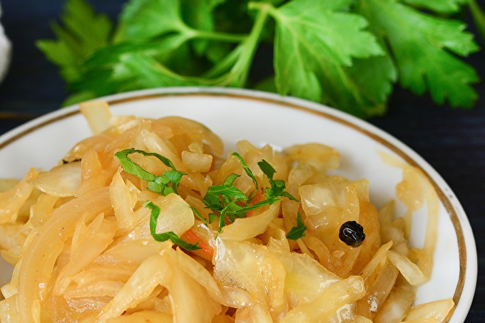 Hearty meat dishes are perfectly combined with vegetables. And if you cook a stewed cabbage, you can do without the side dishes of potatoes or porridge. Delicious, braised sauerkraut in German is a great addition to grilled pork or chicken sausages, baked shin or ribs.