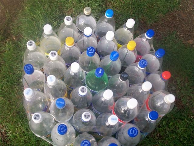 Drainage of rainwater or rainwater from a roof made of plastic bottles has the following positive points: