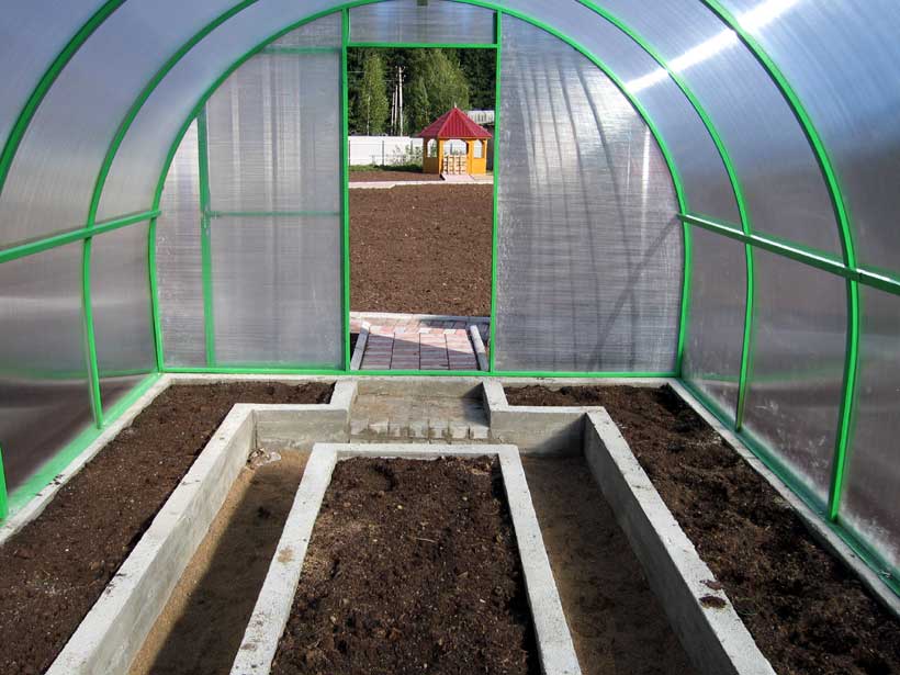 The main distinctive feature of the installation in such areas is bulk ridges. They differ in the fact that in the first year of a good harvest you should not reap. But the longer the greenhouse is operated, the better the quality, quantity of the crop.