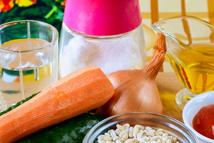 Add the finished dressing to the pickle in the cooking process, or just eat as a side dish. Vegetables with barley form a great option for a snack.